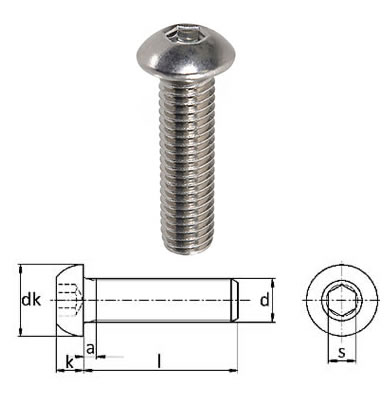 DIN EN ISO 7380 Bombe Başlı İmbus Paslanmaz Cıvata